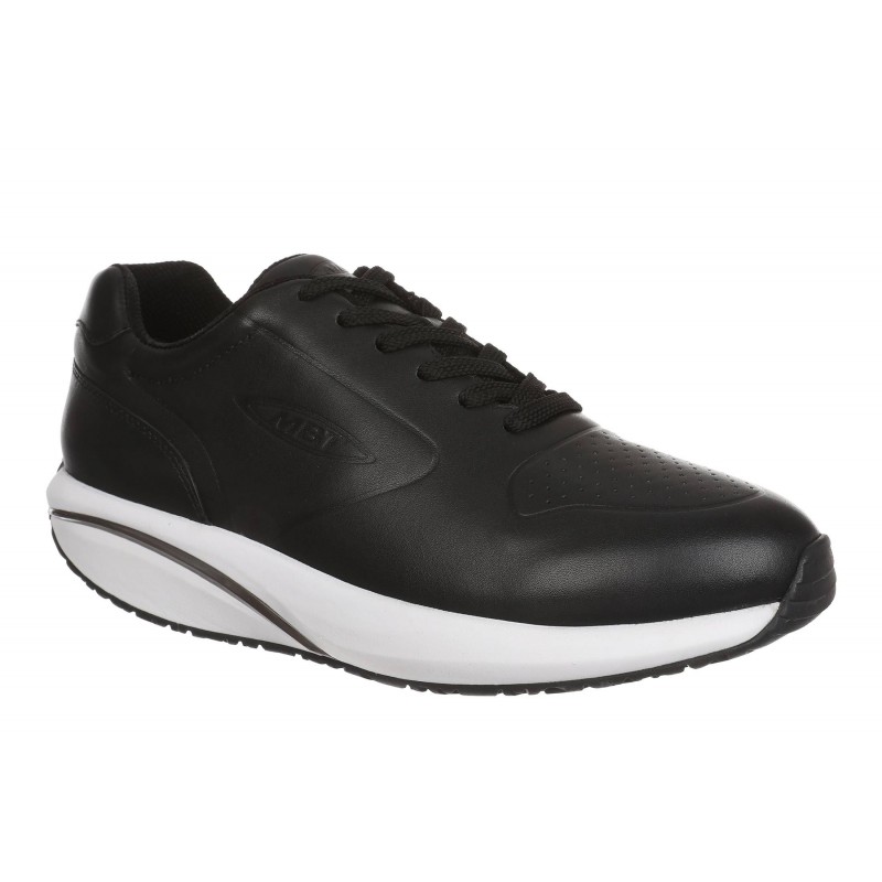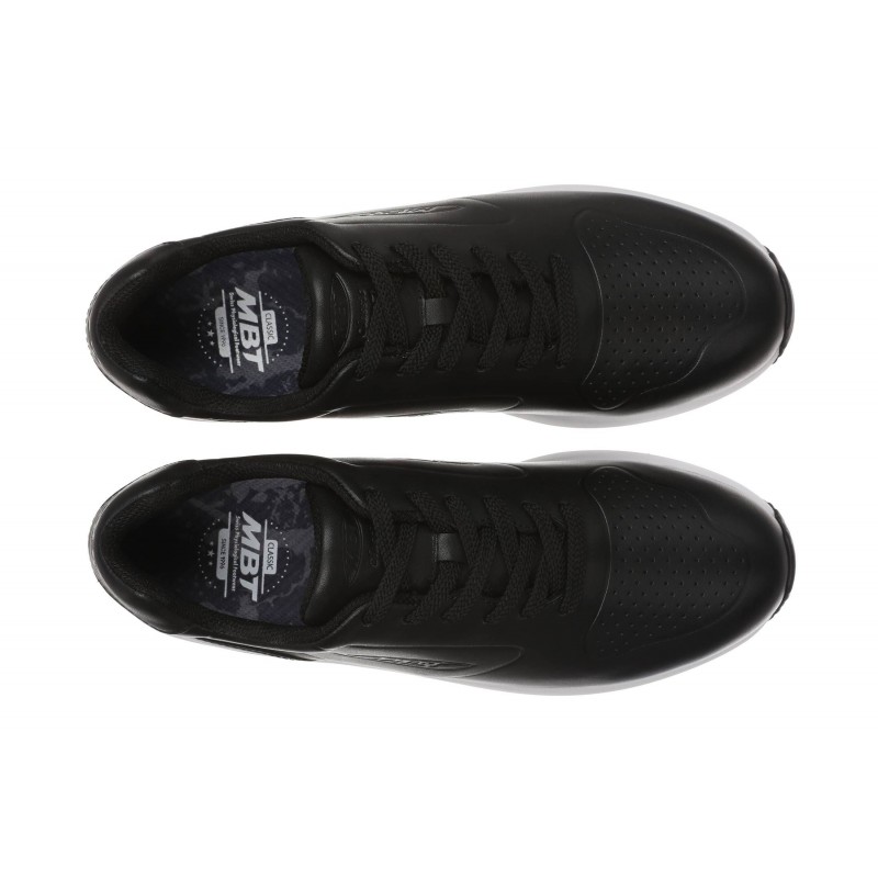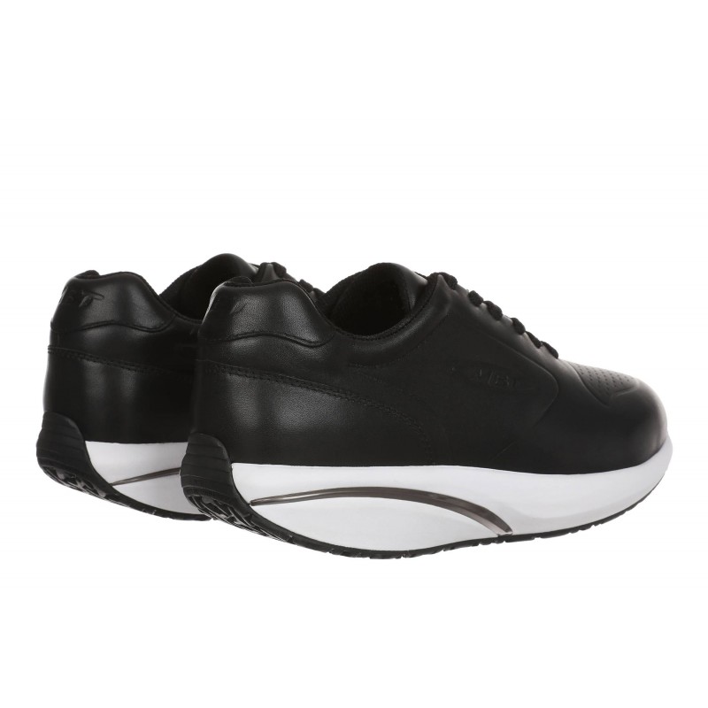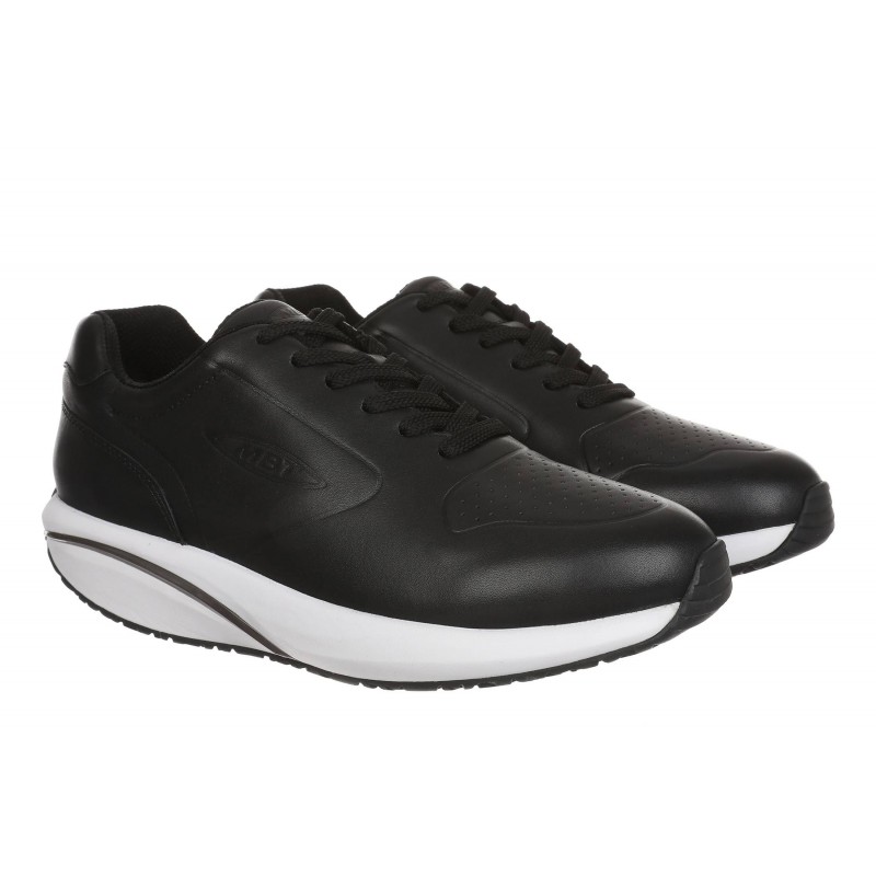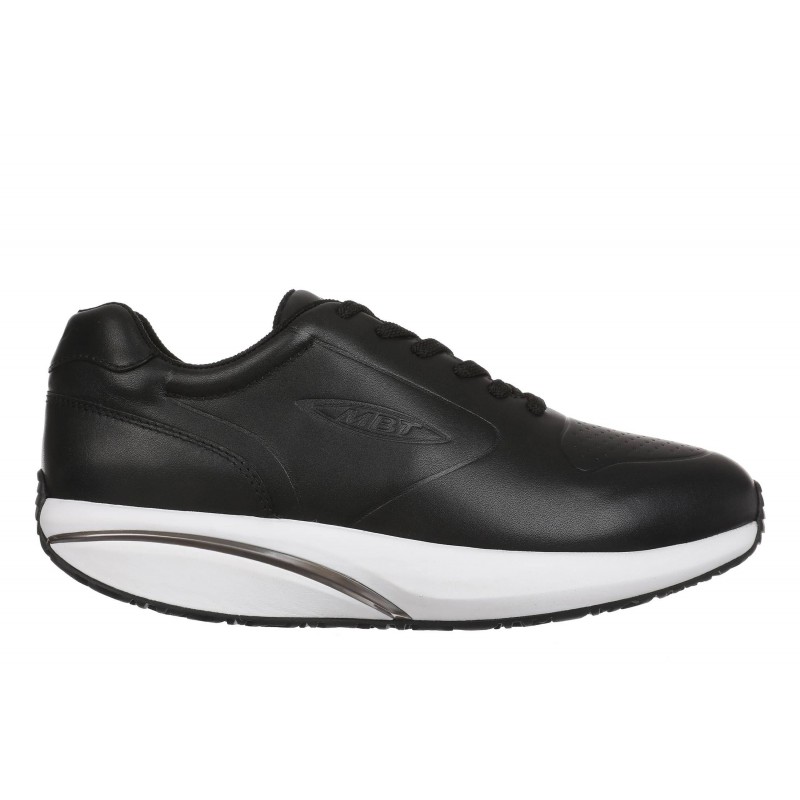 Az MBT 1997 nevű modellünk ötvözi az eleganciát és a sportosságot egy mindennapi viseletre tökéletesen alkalmas cipőben. Fekete színe és az elegáns fényes bőr könnyen kombinálhatóvá teszi. Fehér talpa divatos kontrasztot képez a fekete bőrrel. Gördülő talpa segít többek között a hát- és ízületi fájdalmak enyhítésében, a hátgerinc kiegyenesítésében és az esetleges lúdtalp kezelésében.